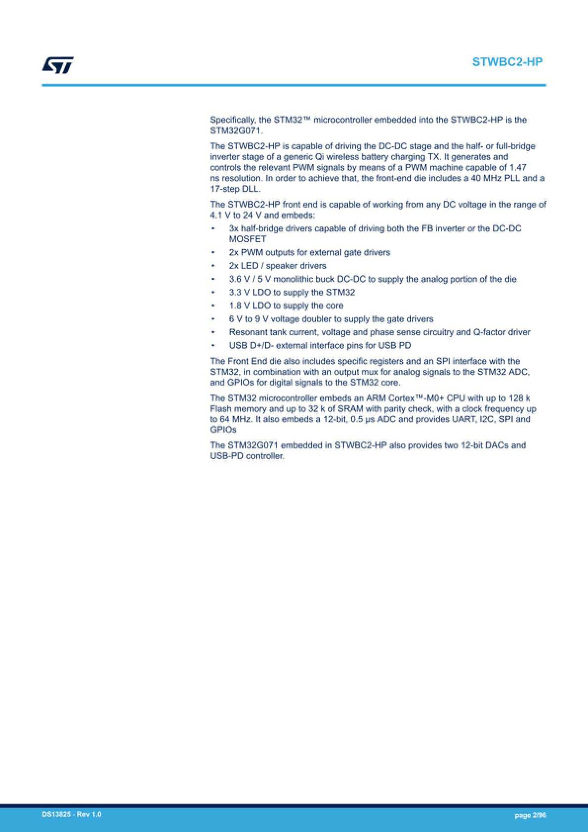 该器件包括电压调节器、全桥和驱动器、ASK解调器、FSK调制器、异物检测(FOD)、PWM模块,以及多通道12位ADC。