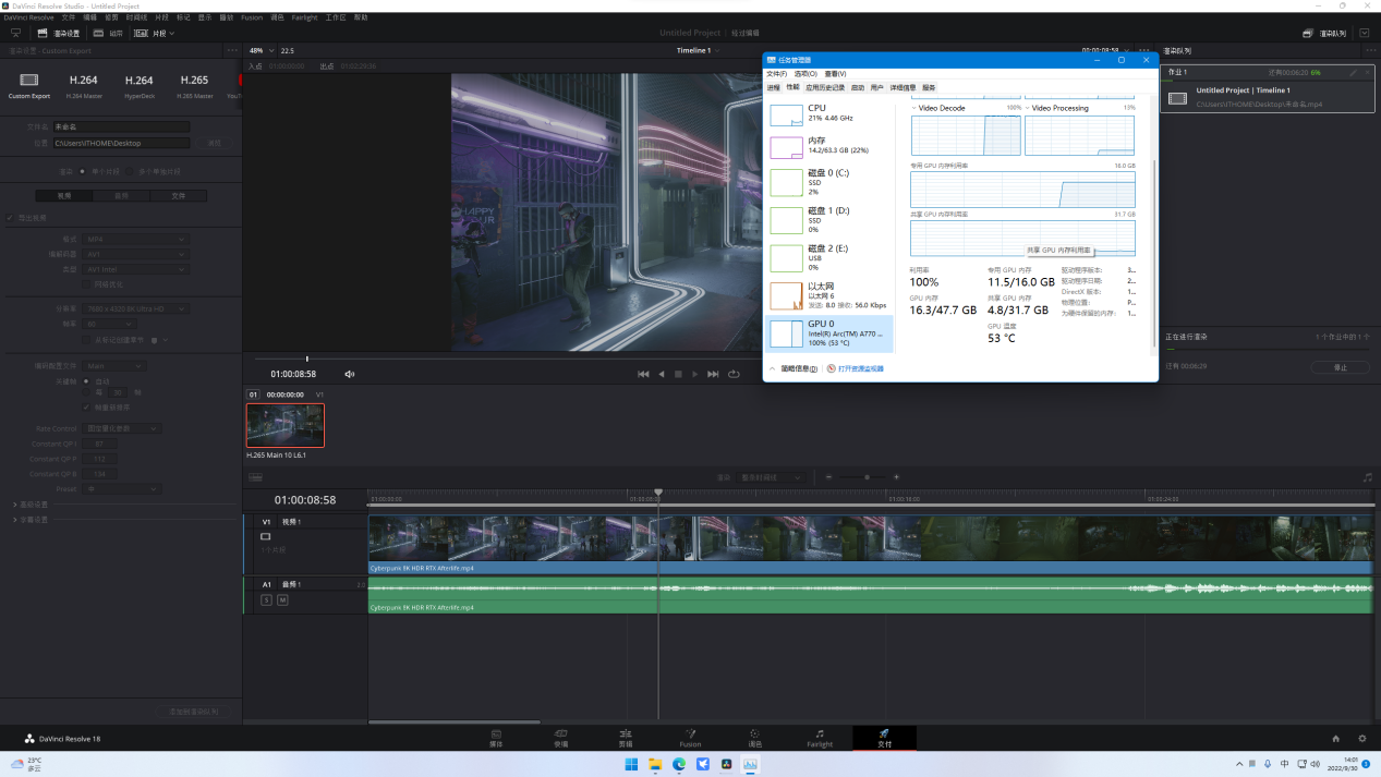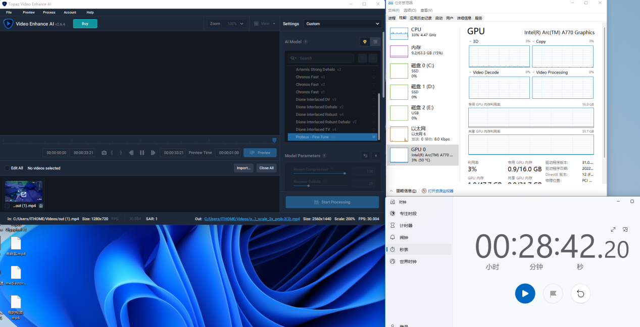 通过测试可以看到,在进行AV1编码时,A770都能够提供更加高效的GPU加速支持,这样就可以大大缩短编码时间,为内容创作者们带来效率上的显著提升。