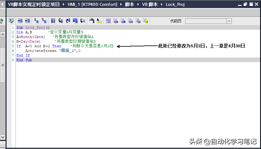 在上一章"在指定日期将项目锁定"中,我们触发VB脚本用的是按钮触发,但是实际工程中,你不可能要求触摸屏的使用者每天触发一次VB脚本,来检测是否锁定项目。(没有任何一个人会这么傻的去锁定自己的项目)