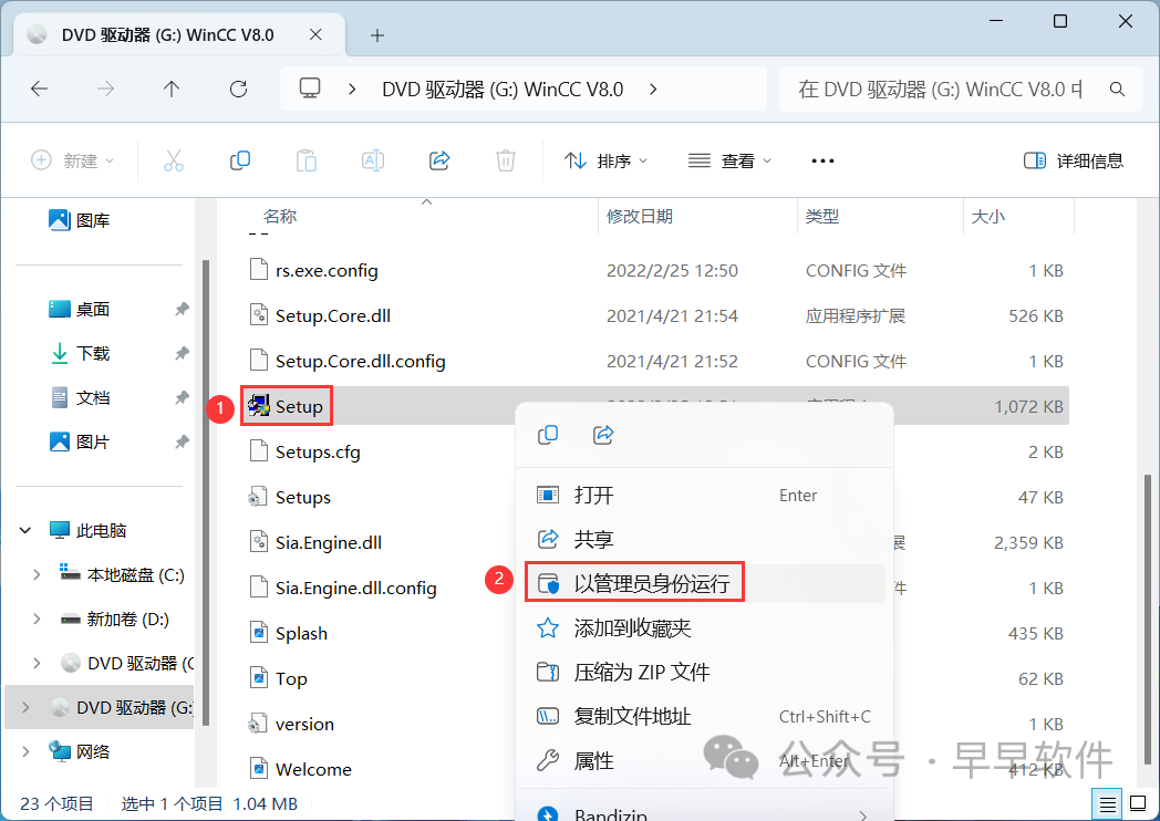 5、找到【Setup】应用程序,右键选择【以管理员身份运行】它