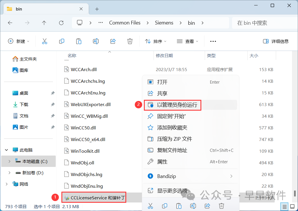 25、找到粘贴的【CCLicenseService和谐补丁】程序,右键选择【以管理员身份运行】它