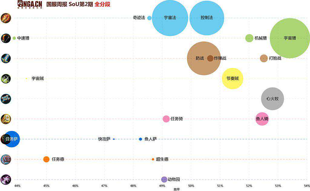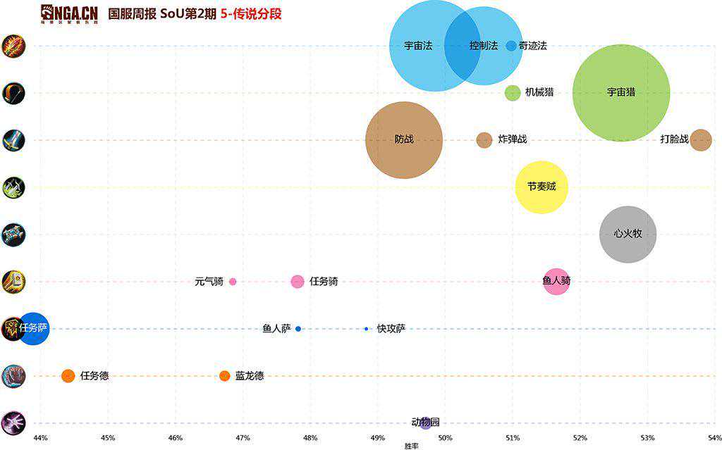 枪打出头鸟,由于宇宙法的崛起和整个环境的疯狂针对,防战的胜率被迅速打了下来(但将来还是有可能随着针对的减少而回升),打脸战在防战的掩护下打出了一周胜率高峰。同时,宇宙(节奏战)并不是昙花一现,在扩张的情况下仍维持着相当好的数据。炸弹战的胜率有所回暖,但地位没有明显的突破,我们还是把它留在我们的卡组推荐里。