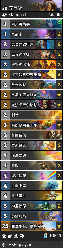 Hunetrace使用元气骑在首尔站以8-4战绩折戟。姐夫和这套牌快速过空牌库的思路相性不错,找解牌和元气后需要的额外伤害都可以(弗丁也是伤害)。在高分段有玩家尝试着用元气骑继续捕捉法师,事实证明,奥数锁匠的反制和多波场面和奇迹法不同,吉安娜不会望着高大的乌瑟尔瑟瑟发抖了。细节和大局观要求都很多,不推荐新手玩家使用。
