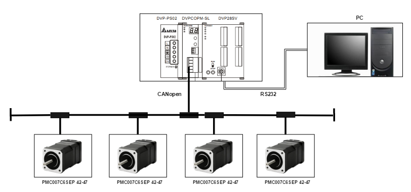 PLC如何通过CAN总线控制步进电机第一步:物料准备1、PLC:台达DVP28SV11R22、CAN通讯模块:DVPCOPM-SL-CANopen3、CAN总线一体化步进电机:PMC007C6SEP4......