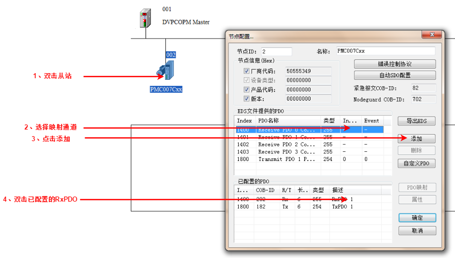从站配置:从站TxPDO配置,按RxPDO配置方式完成如下图配置