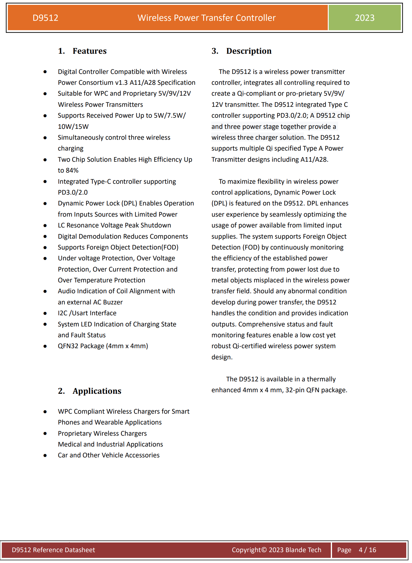 SC9608采用4mm*4mmFCQFN-25倒装封装,可获得更佳的散热性能。适用于各种兼容WPC的无线充电发射器或私有协议的无线充电发射器使用。