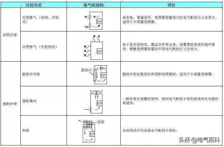 4.变频器的容许周围温度范围是-10℃~+50℃,必须在此温度范围内使用。超过此范围使用时,半导体、部件、电容器等的寿命会显著缩短。在安装时要充分考虑安装环境。附变频器冷却方式如下: