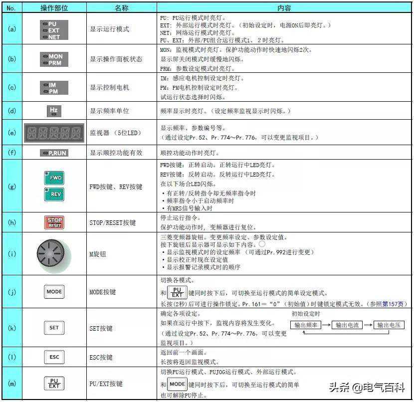 依据控制要求与使用环境对变频器进行相应参数设置。在进行参数设置前首先要清楚变频器面板的按键作用。