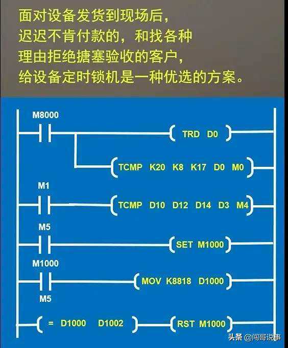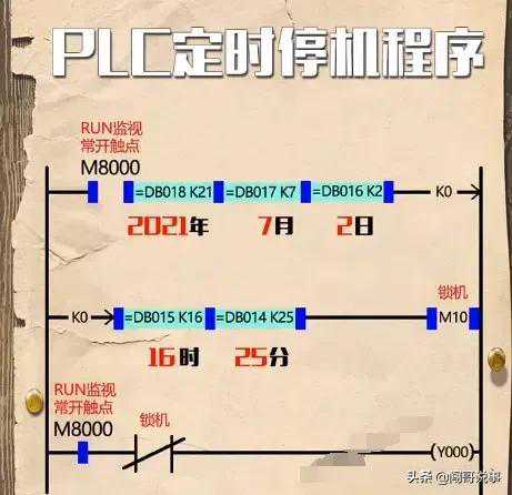 方法1:程序每次运行会自动加1,那么运行100次之后,程序执行STOP指令,PLC就会停止工作,达到停机催款的目的