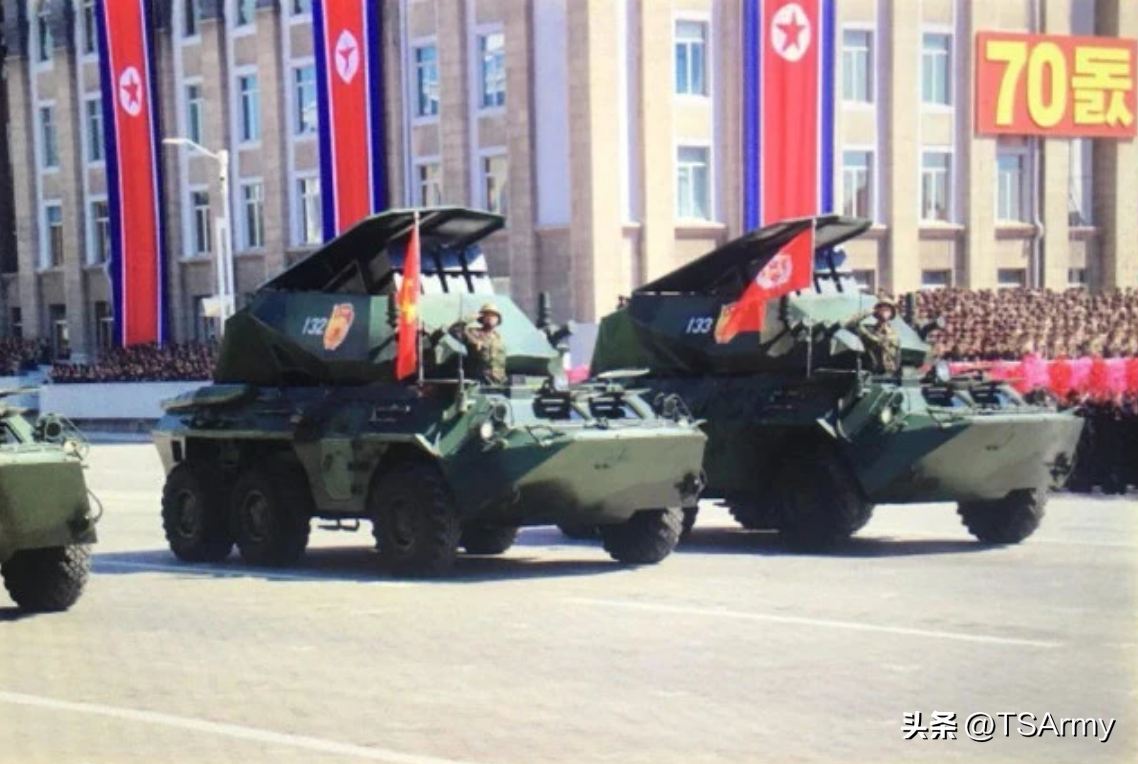 ZSU-23-4实际上是由前苏联当年援助给朝鲜的“石勒喀河”23毫米自行防空炮,但有一部分的底盘被朝鲜重新改进,安装了一个自制炮塔,内置双联30毫米高射炮。