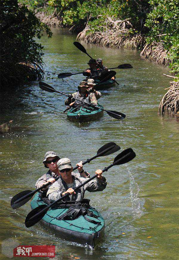 CRRC也被其他特种作战部队使用。这张照片显示的是美国陆军特种部队战斗潜水员戴着水肺的画面。