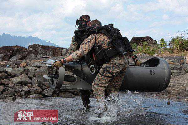 海军陆战队第26陆战远征队(MEU)的侦察排,通过DPD接近海平面。当在水面下操作时,DPD和潜水员仍然保持着低可视度。