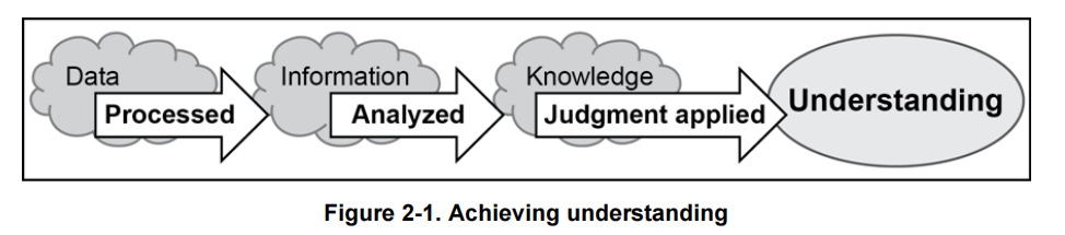 ◆数据(Data)→【处理(Processed)】→◆信息(Information)→【分析(Analyzed)】→◆知识(Knowledge)→【运用判断力(Judgementapplied)】→◆理解(Understanding)