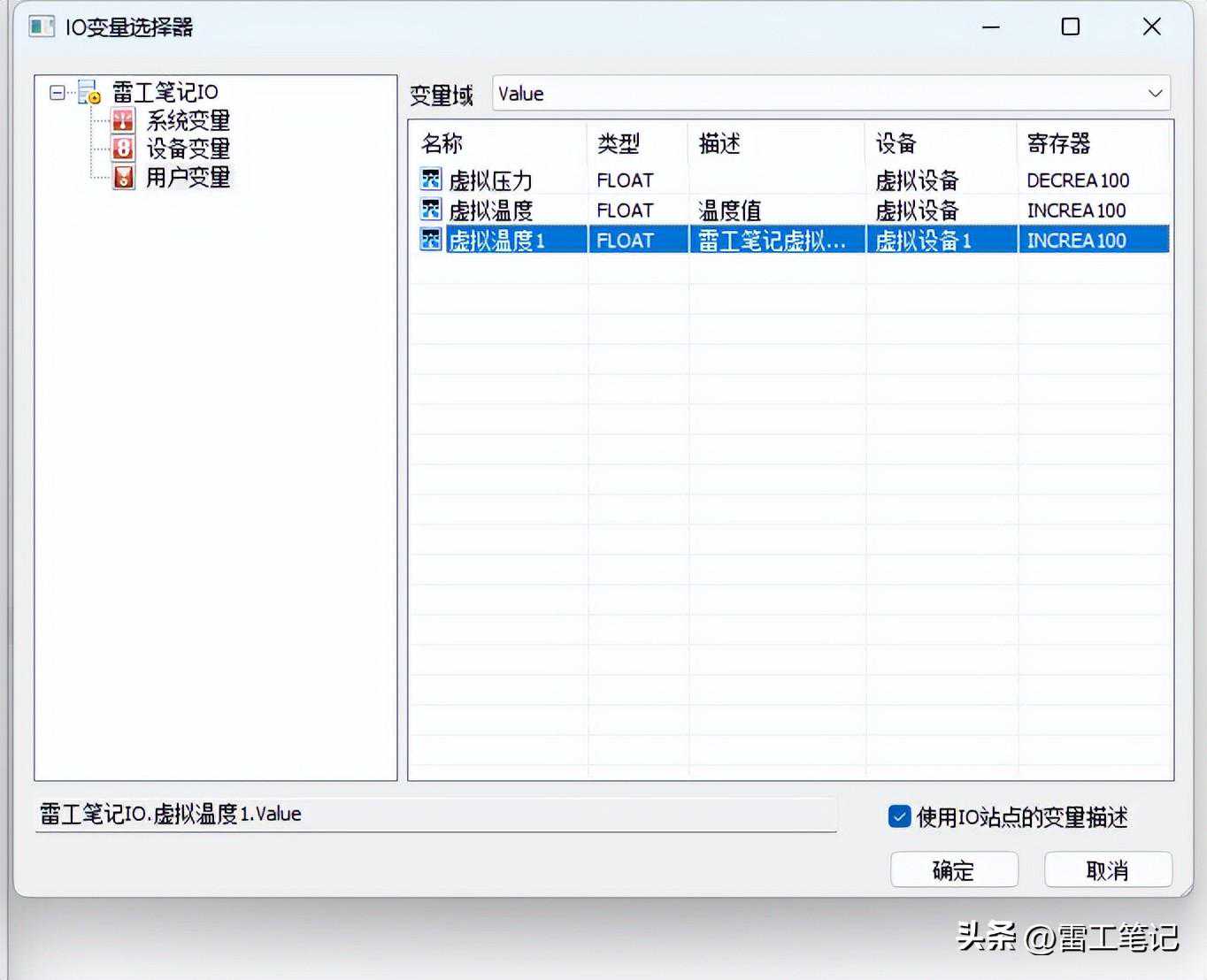 后记以上为关于仿真设备仿真数据的应用方式,具体应用时我们可以根据实际需要选择虚拟驱动的不同寄存器,再结合数据类型和属性设置模拟我们需要的仿真数据,从而达到接近真实的演示效果。