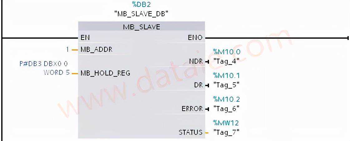程序中不存在“MB_SLAVE”指令的输入引脚“MB_HOLD_REG”对应的DB块。