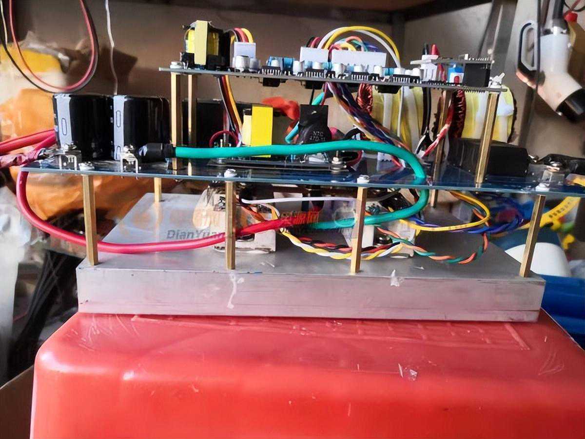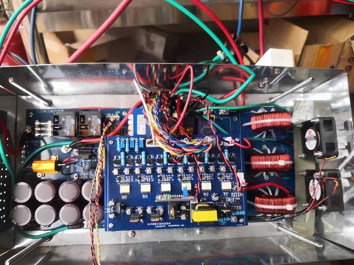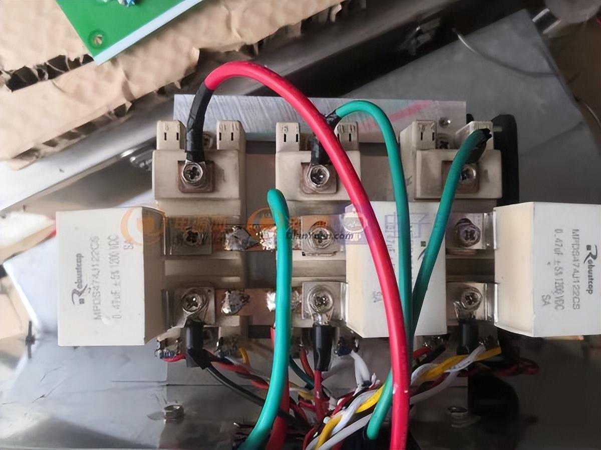 也上一些做单相逆变器的图,单相用了EG8011控制芯片驱动采用PC929功率器件用200A的IGBT模块!做快充桩转换器供混动汽车充电使用,或者电动汽车电池放电使用!输入电压可以320-750V输出单相220V正弦波交流!那么高的电压不能直接通电要有预充电电阻,用继电器控制上电缓冲!高压辅助电源也是一个技术难点!范围很宽最大最高电压750V最低320V,我是用3844反激式辅助电源功率大!