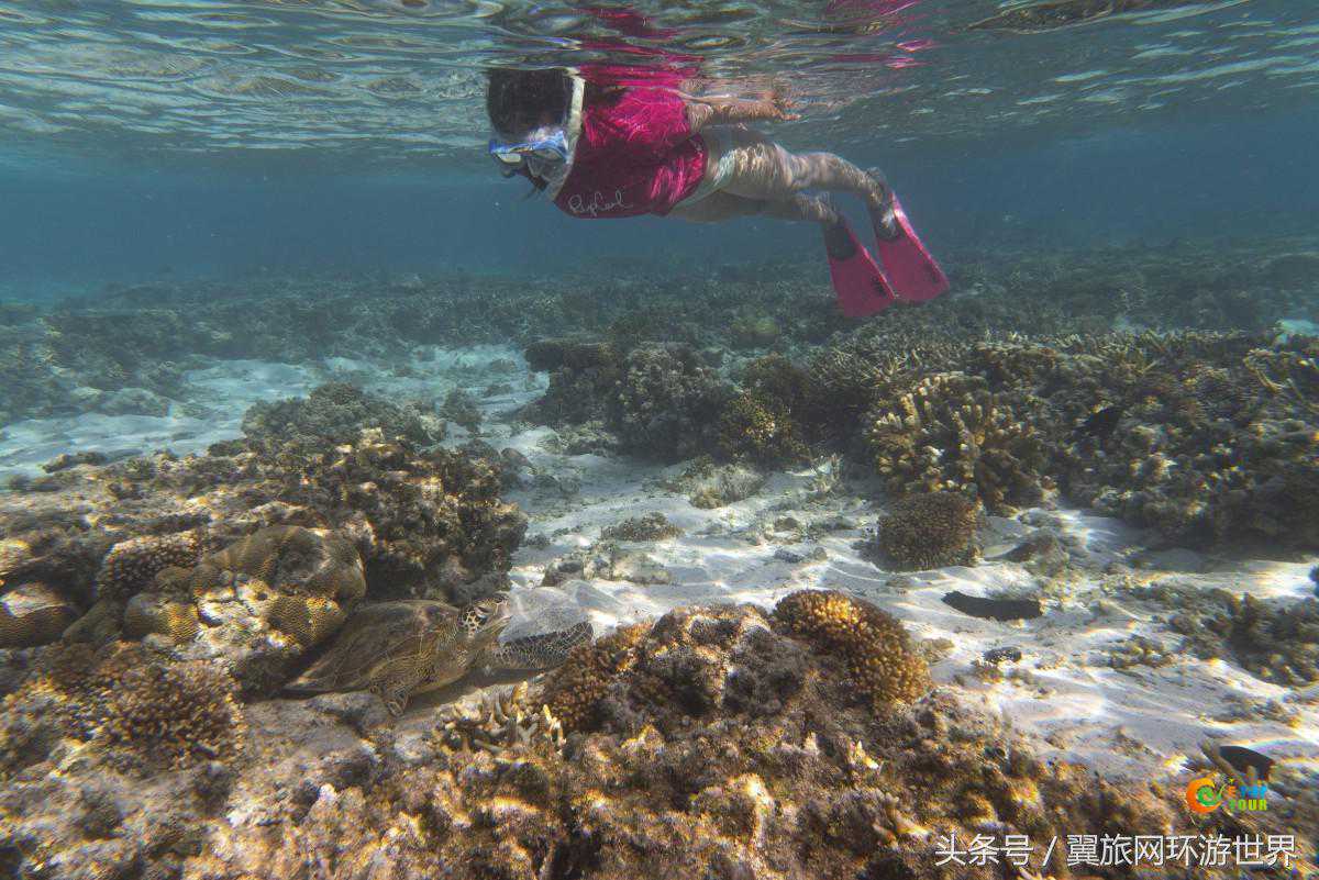 20.在大堡礁(GreatBarrierReef)南部的伊利特女士岛(LadyElliotIsland)尝试一次潜水,你会惊喜地发现,蝠鲼和海龟就在你身边畅游。给小朋友拍一张与海龟同框的照片吧。
