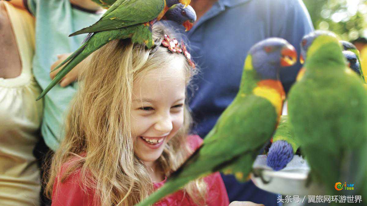 60.在黄金海岸的可伦宾野生动物保护区(CurrumbinWildlifeSanctuary)里给吸蜜鹦鹉喂食,还能与园内萌萌的吉祥物BlinkyBill互动合影。