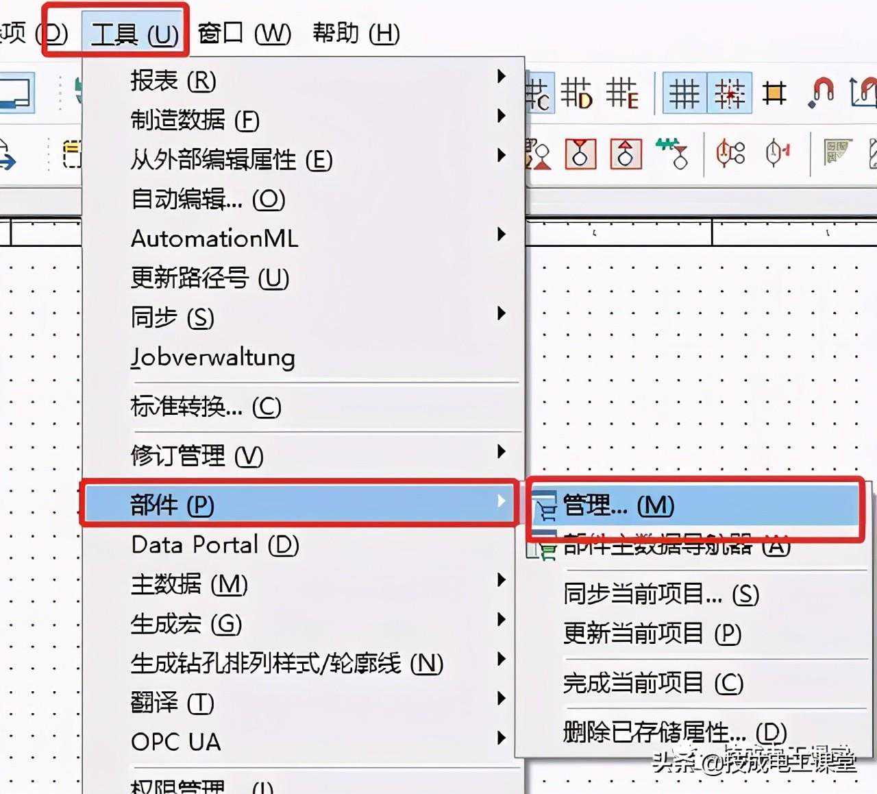 2)其次我们需要打开eplan绘图软件,在这以为例操作;选择工具→部件→管理,如图3所示。本文宏文件,请在看文末下载!