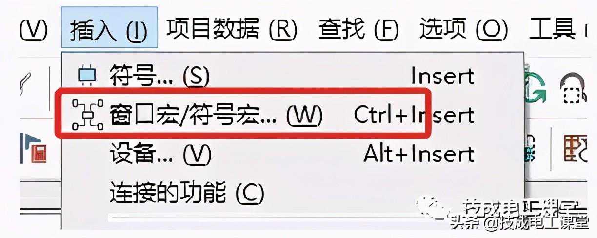 7)这时我们就可以在菜单栏中选择“插入”→“窗口宏/符号宏”(如图10所示)中选择我们刚添加的宏文件了,如图11所示。