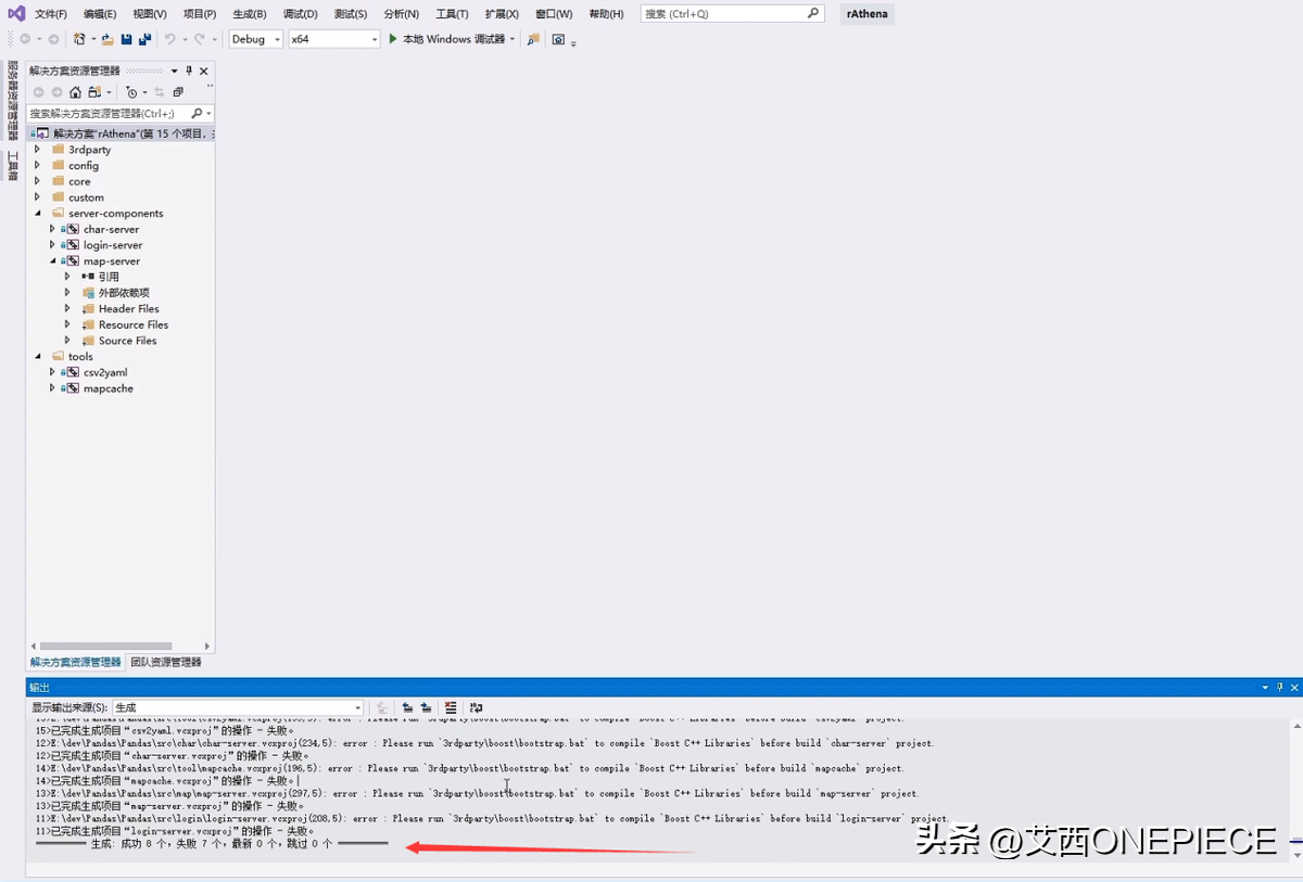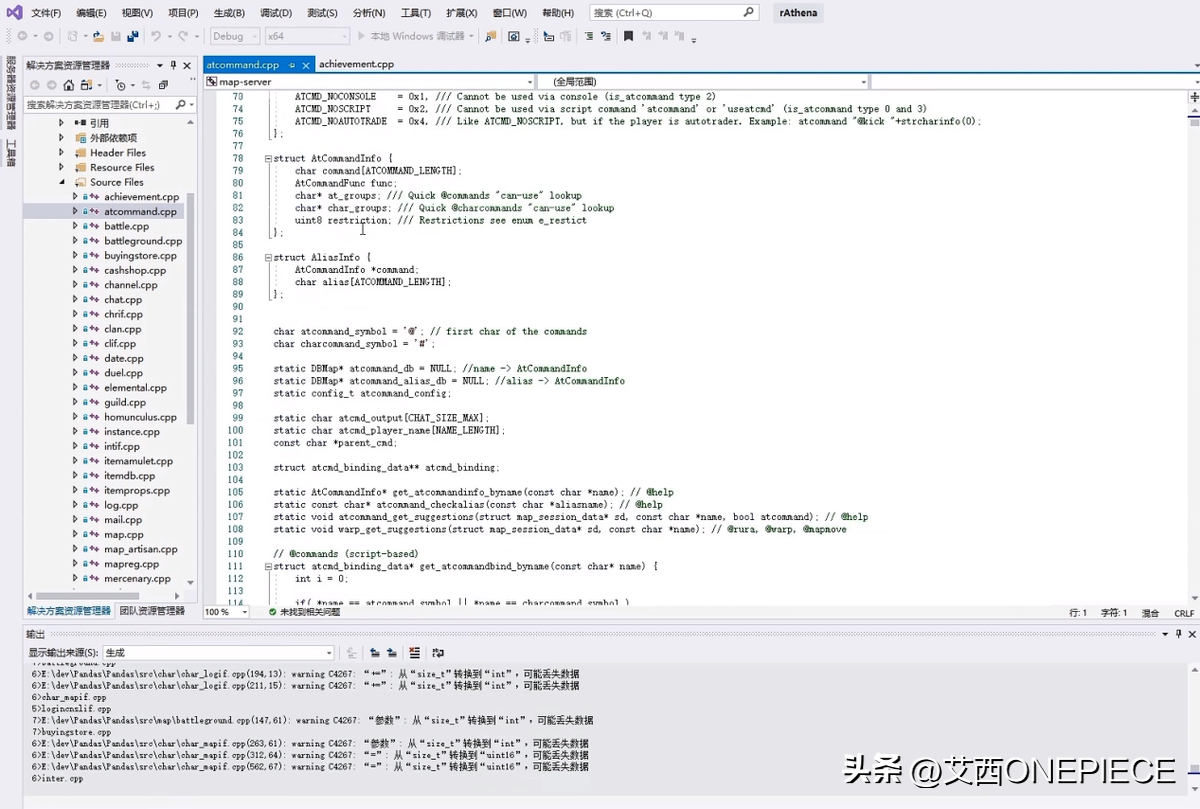 搭这个环境的目的是后期会讲一些列仙境传说RO模拟器的服务端脚本开发语音,虽然这个语言设计并不是那么完善,但他的语言设计并不针对与程序员开发的,而是对于想开服的且程序基础并没有那么深的人设计的。这里等待编译完成就好了,我们之前有报错的文件现在你可以看看VS界面跑起来一定是正常的。
