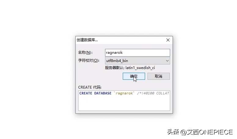 可以看到我们刚刚创建的账户已经连进来了,在这个账户创建一个数据库命名为ragnarok,字符校对utf8mb4_bin即可,如果不是的话自己记得选择utf8mb4_bin