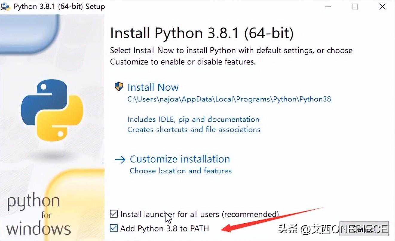 用windows平台的executableinstaifer记得勾选我们才能把python加到环境变量里,我们才可以在终端里直接输入python