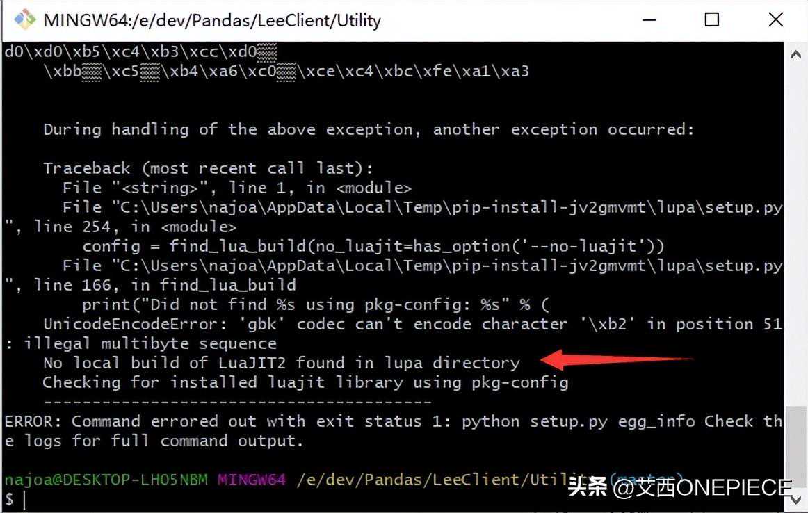 图中出现升级pip的一个指令,原因:提示当前版本为19.2.3得20.0.0版本才行,那么可以根据提示执行一下:$python一mpipinstall--upgradepip然后再次执行指令回车发现最后还是报错,我们查看原因lupa缺失,的再安装一个lupa