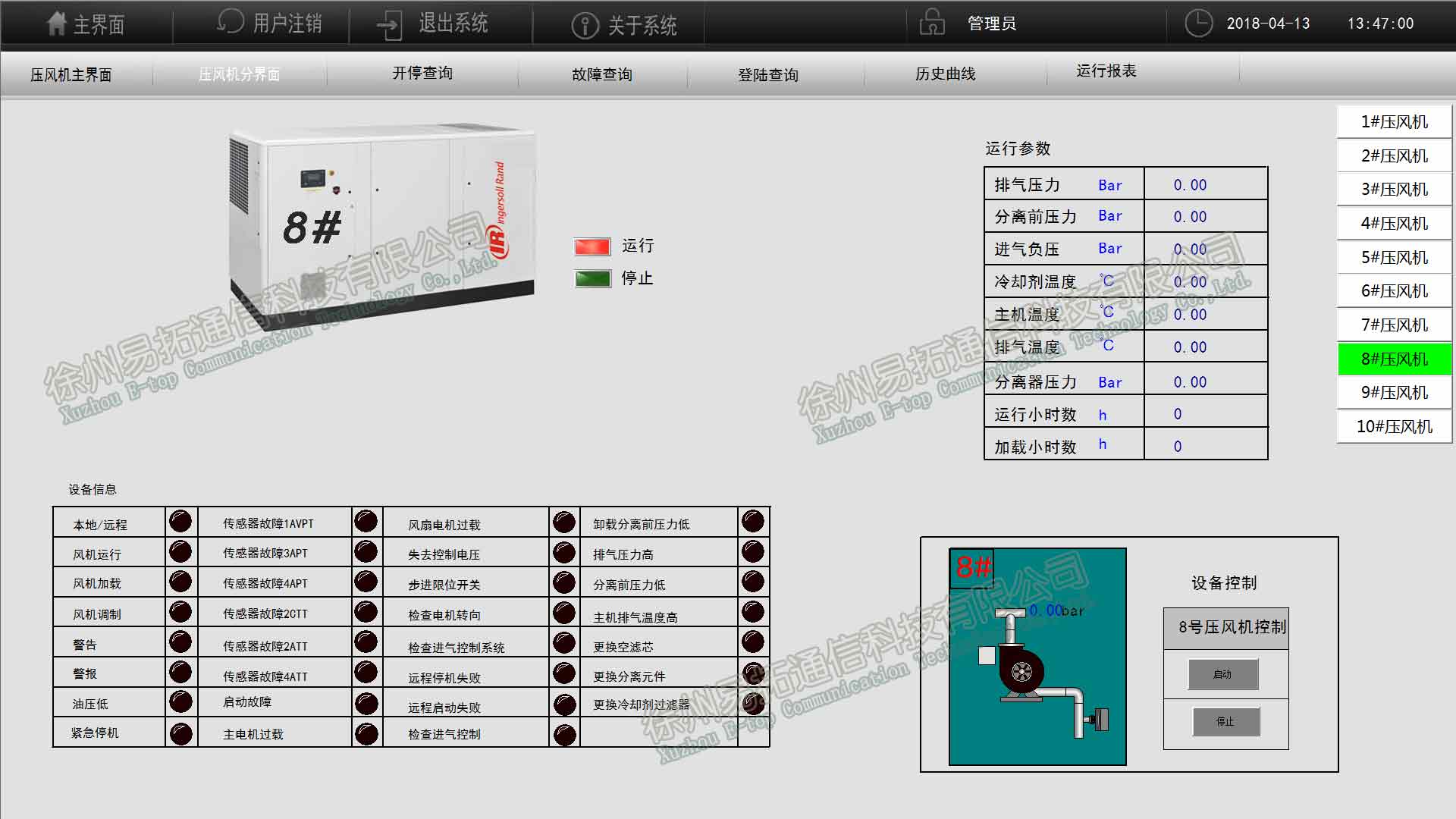 1)能够自动采集、显示压风机的各种运行参数,控制压风机运行。