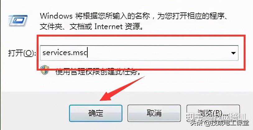 进入运行窗口之后接着在输入框中输入命令:;输入之后按下回车键可以进入到系统的服务界面了。