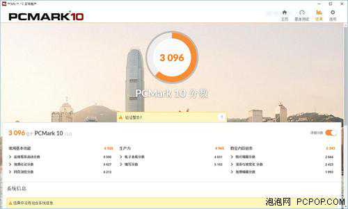 另外,笔者还通过PCMark来对该机进行了测试,结果可以看到,蜂鸟C24-710S一体机的综合性能则拿到了3096的分数,可以看得到,不管是日常的网页浏览,还是图像处理,它的效率还都是非常不错的,这个分数对于家用电脑来说,应对日常的使用来说是完全没有任何问题的。