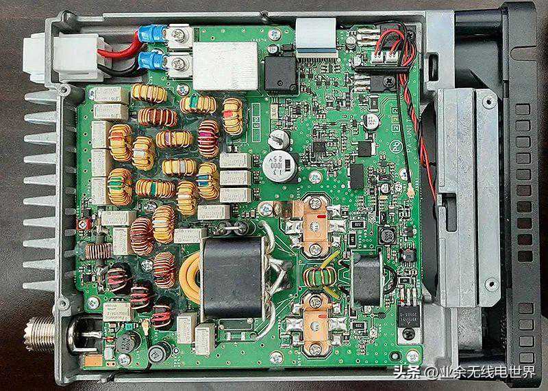 打开FT-891的上下盖,你会发现FT-891用料扎实。元器件排列整齐,分布错落有致,很多地方都设置了屏蔽罩和屏蔽措施降低机内信号的窜扰。机内大量使用日本原产的FT富士通继电器,性能和耐久性更为可靠。两个主动散热小风扇使用的是名牌NMB的04010规格产品。FT-891使用的射频功放管是2枚现代小型台式短波电台中常用的三菱RD100HHF1场效应管,可靠性所谓久经考验。