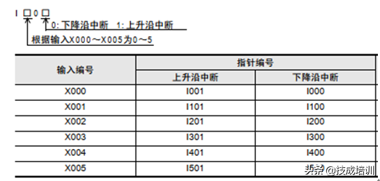 如下图,我们更改用的中断的编号其中一个是I001,那么对应的应该是X0的上升沿,也就是说,我们外部按下X0的按钮的一瞬间,这一段中断程序就会运行,只运行一个plc的扫描周期,然后又跳回主程序,只运行了一次;又比如I200这段中断程序,需要触发X2的下降沿,就可以跳出主程序,执行I200这一段中断程序,执行一次后又跳回主程序。其他几个X点的不同信号分别对应了不同的中断程序编号。我们可以随意选择。
